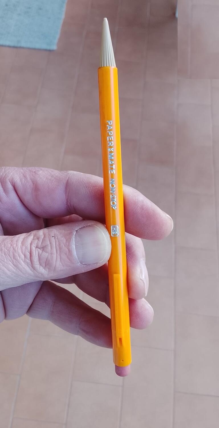 Avanzamento a Rotazione: A differenza delle moderne matite a scatto, la mina avanza e si ritrae con una semplice rotazione del puntale beige, eliminando la necessità di temperare.