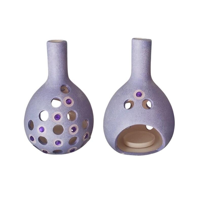 Questo set di 4 eleganti lumi a candela in ceramica è una creazione artigianale pensata per chi ama i dettagli ricercati. Il corpo in ceramica, lavorato con cura, è decorato con zirconi incastonati che riflettono la luce creando un effetto brillante e raffinato.
