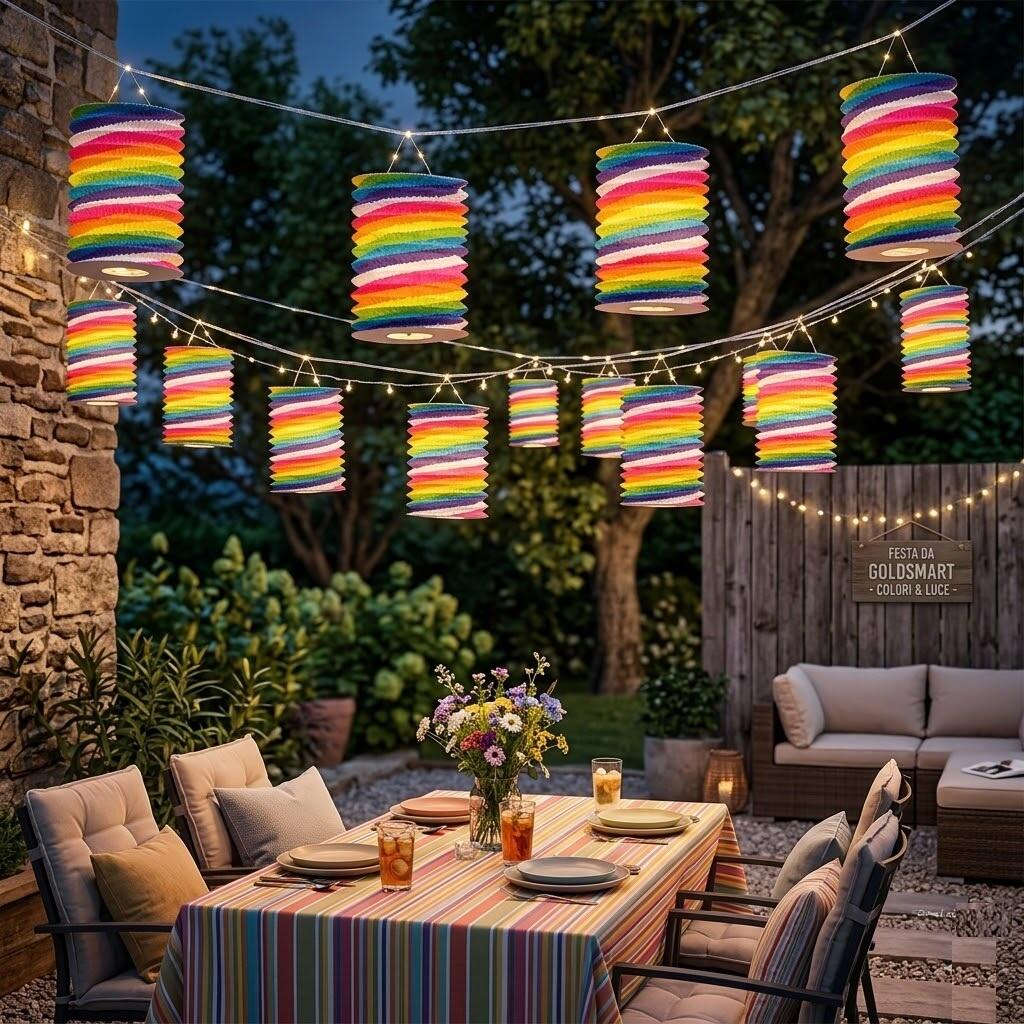 Multicolore Vibrante: Ogni lanterna presenta una sfumatura completa dell'arcobaleno, ideale per feste di compleanno, party estivi o eventi multiculturali.
