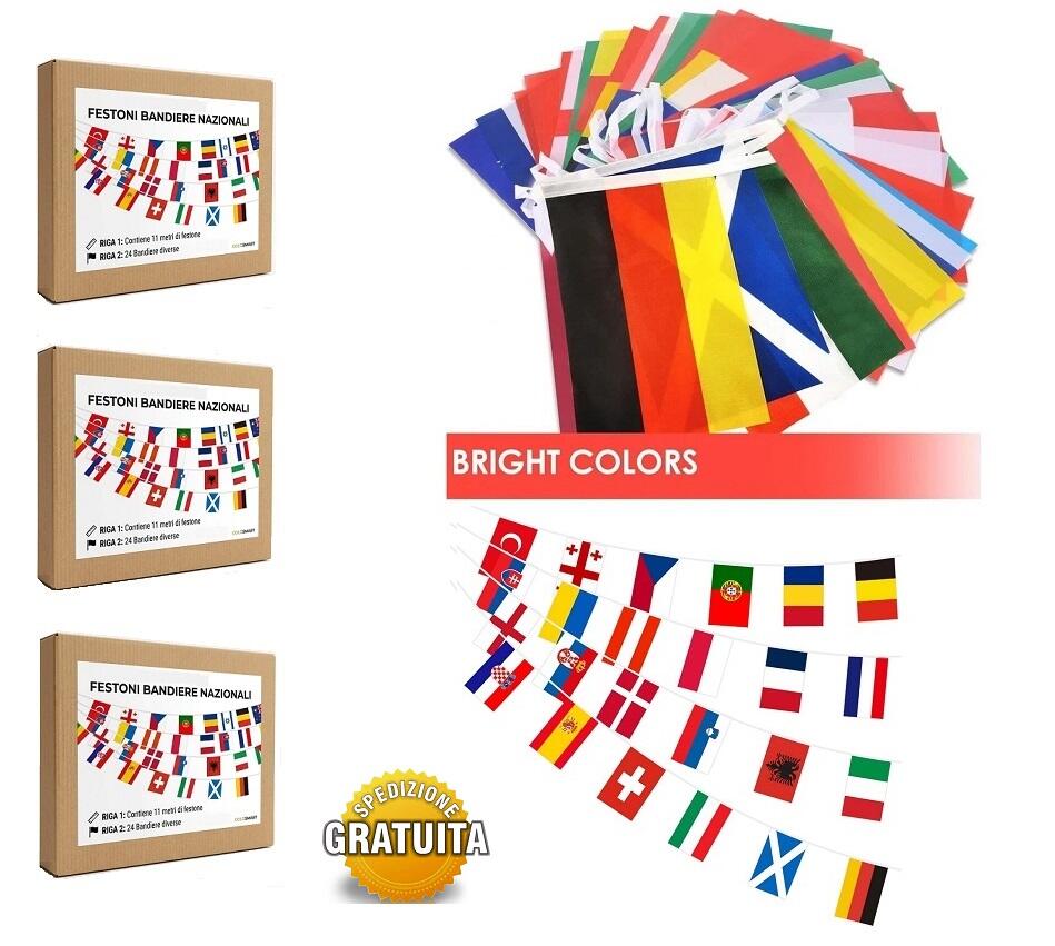 Varietà: Ogni festone presenta 24 bandiere diverse rappresentanti le nazioni del mondo, con colori brillanti e definiti.