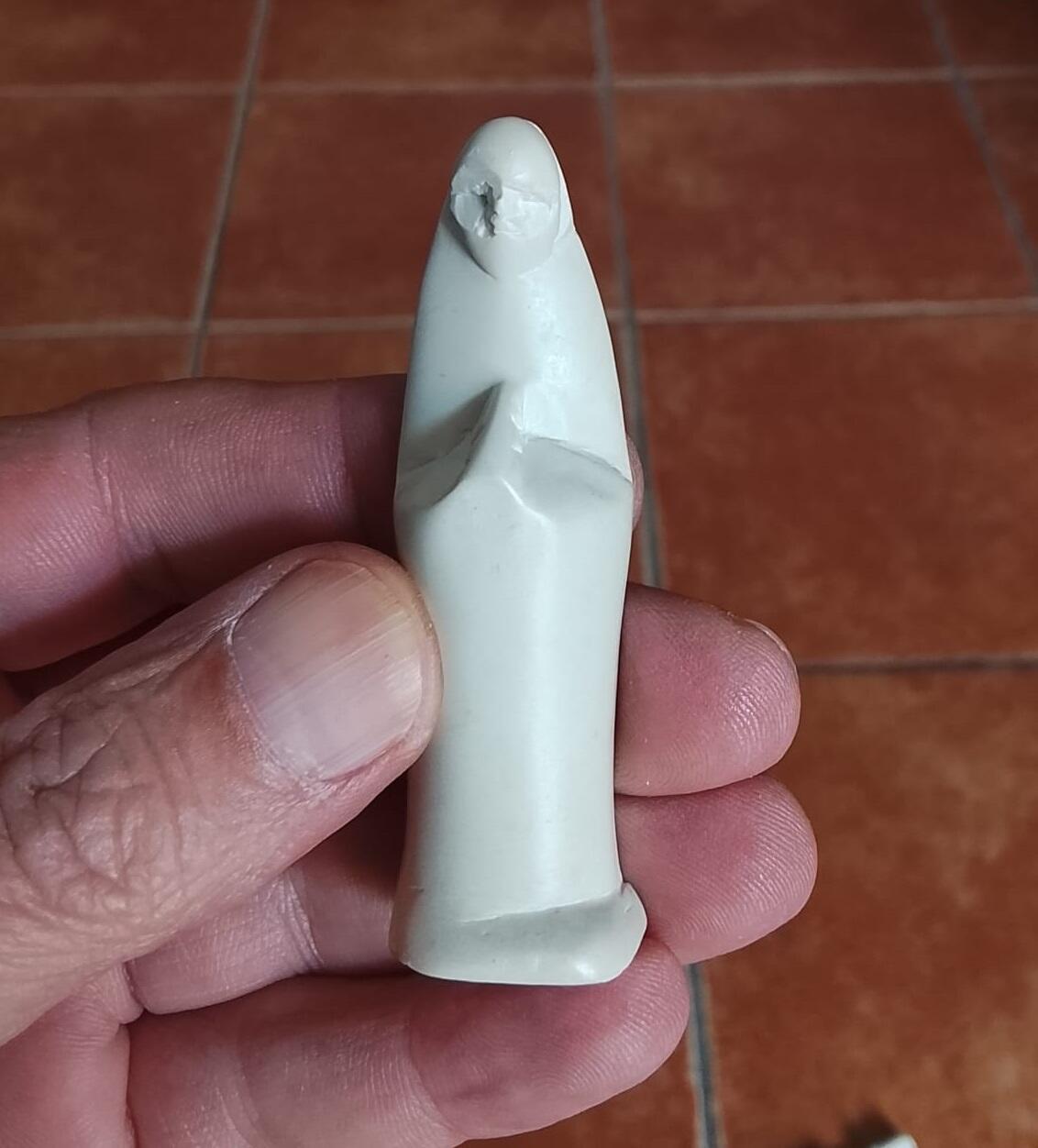 I personaggi presentano sfumature uniche che vanno dal beige crema al rosa terroso/rosso, tipiche di questa pietra, esaltandone l'origine naturale.