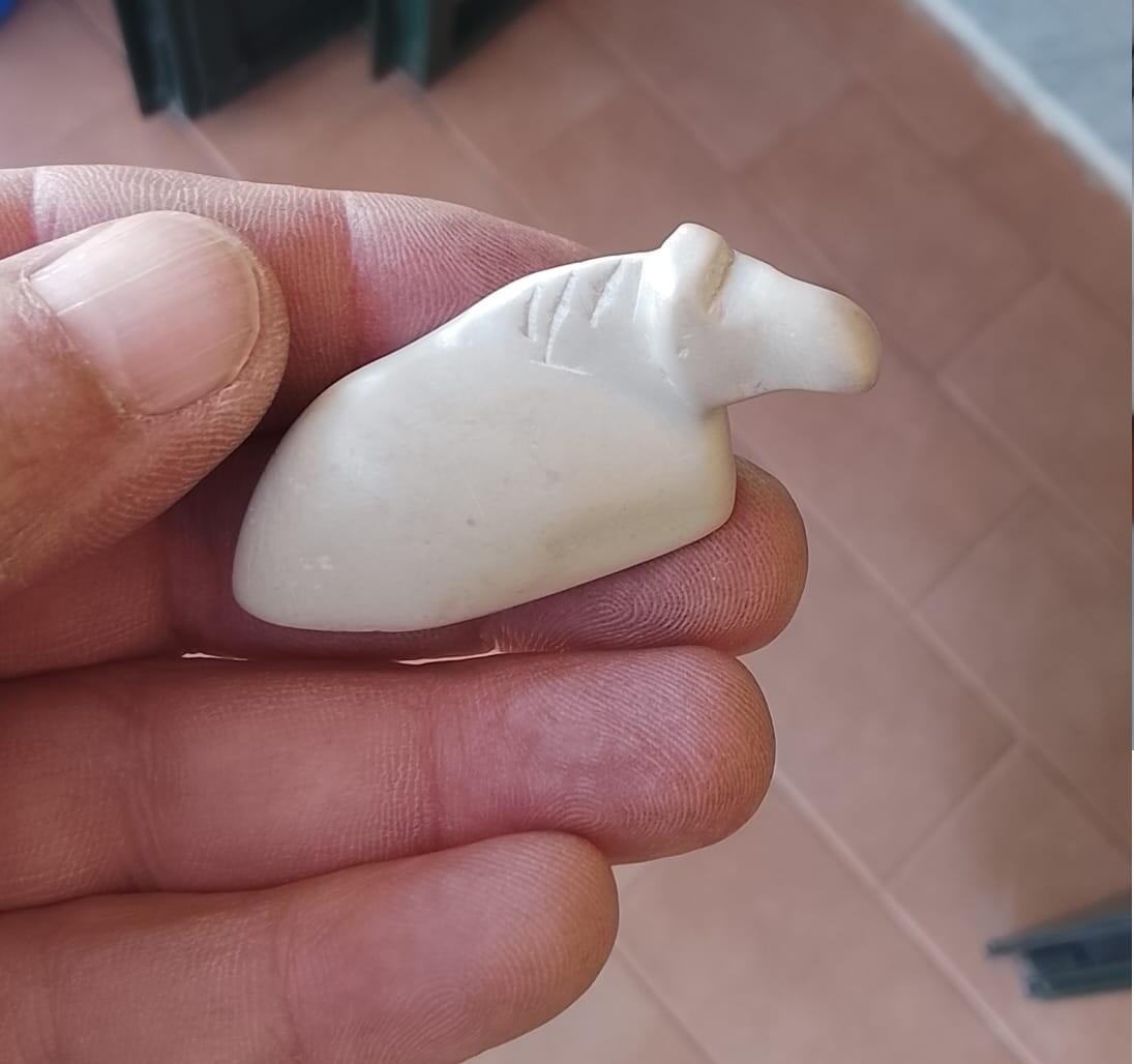I personaggi presentano sfumature uniche che vanno dal beige crema al rosa terroso/rosso, tipiche di questa pietra, esaltandone l'origine naturale.