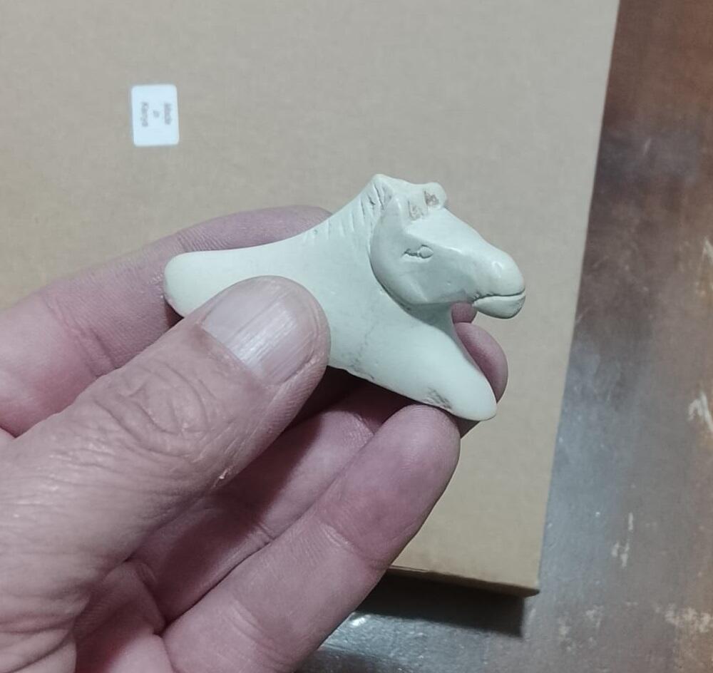 I personaggi presentano sfumature uniche che vanno dal beige crema al rosa terroso/rosso, tipiche di questa pietra, esaltandone l'origine naturale.