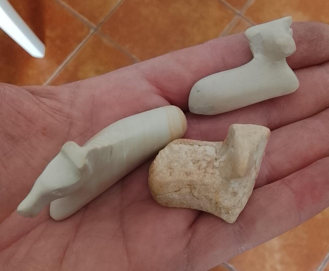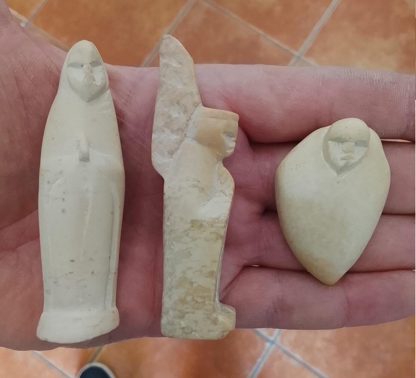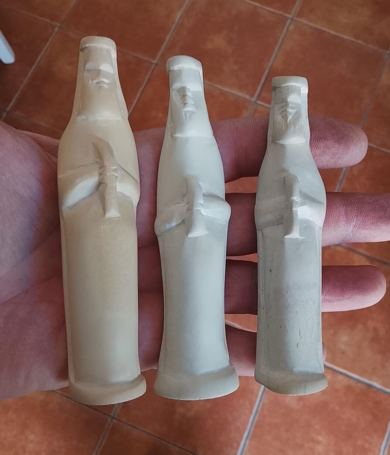 I personaggi presentano sfumature uniche che vanno dal beige crema al rosa terroso/rosso, tipiche di questa pietra, esaltandone l'origine naturale.