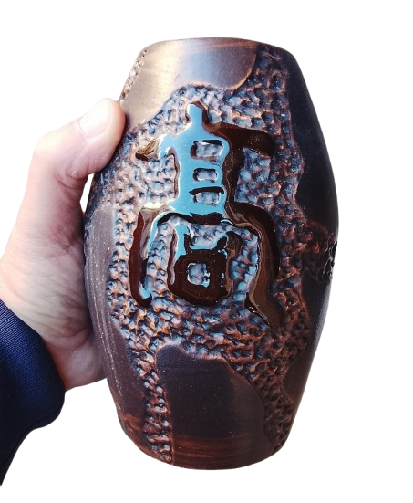 Vaso Decorativo in Ceramica Orientale - Stile Zen con Ideogrammi